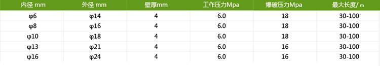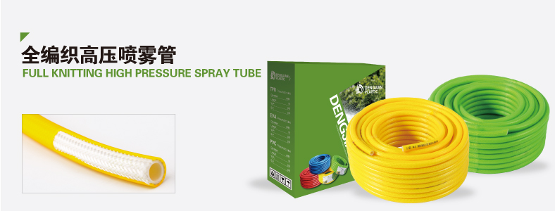 高壓噴霧管內層采用抗酸堿及耐藥型塑料,中層編織高密度、高拉力纖維,可抗160公斤爆破壓力,易于操作,靈活耐磨。具有耐腐蝕、耐硬化、耐彎曲、耐高溫、耐低寒、耐高壓等特點(diǎn),外表光滑,色澤艷麗。外皮添加UV抗紫外線(xiàn)劑,烈日下暴曬不易龜裂??砂凑湛蛻?hù)要求制作各種規格以及國際標準接頭。